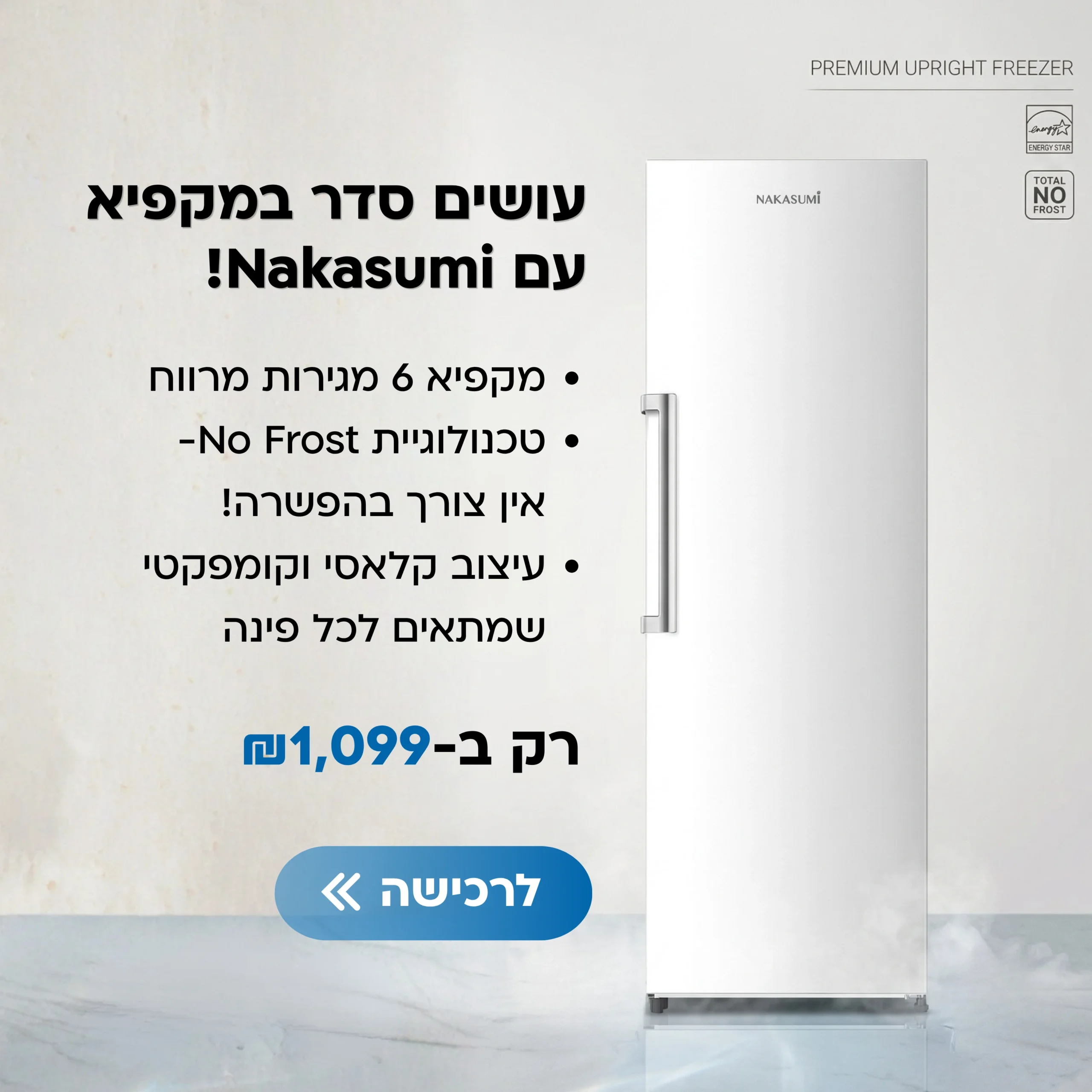 מדחס Inverter שקט וחסכוני בחשמל | מערכת No Frost מתקדמת