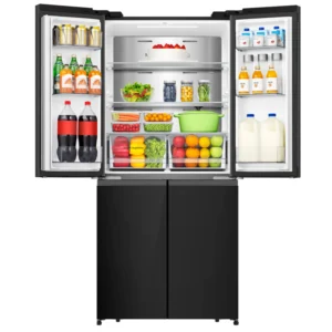 מקרר 4 דלתות מקפיא תחתון 483 ליטר Hisense RQ58BG – גימור זכוכית שחורה אחריות ע”י היבואן הרשמי